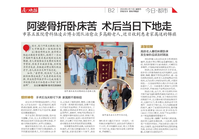 《厦门晚报》:阿婆骨折卧床苦 术后当日下地走