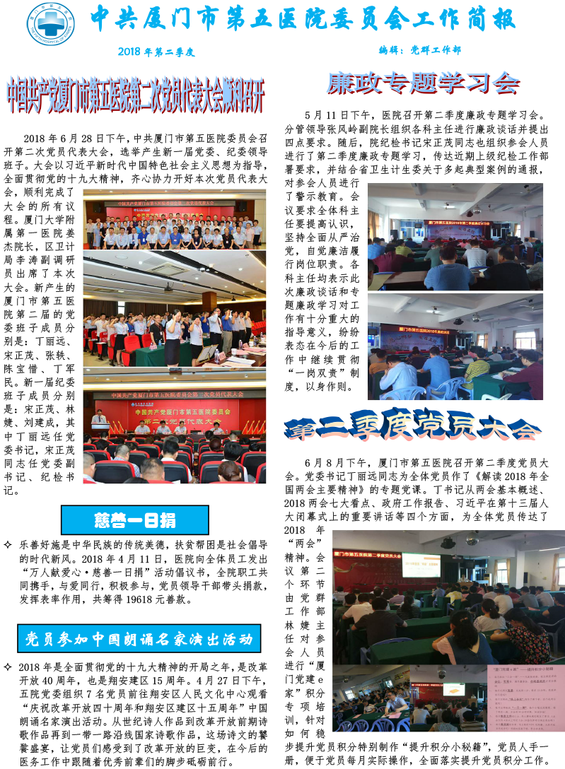 2018年党委第二季度工作简报